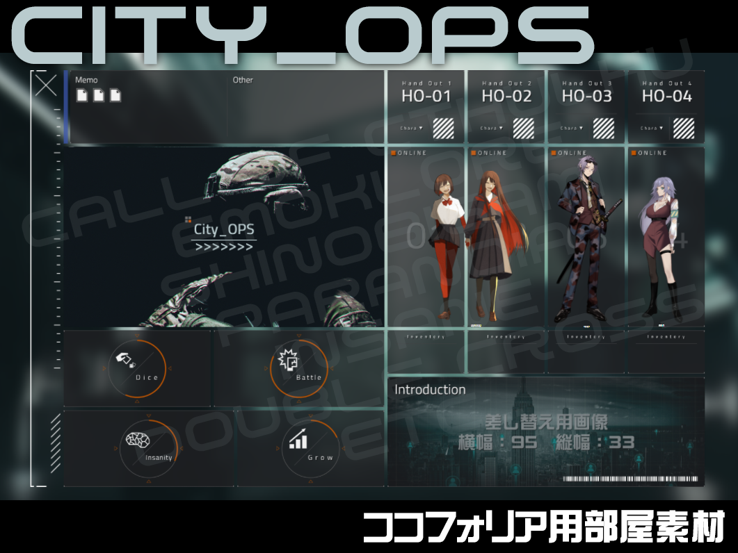 ココフォリア用にデザインした装飾素材。 / ミリタリー+近未来+デジタル / Hz様および仈號ネオ様にイラストをお借りしています。