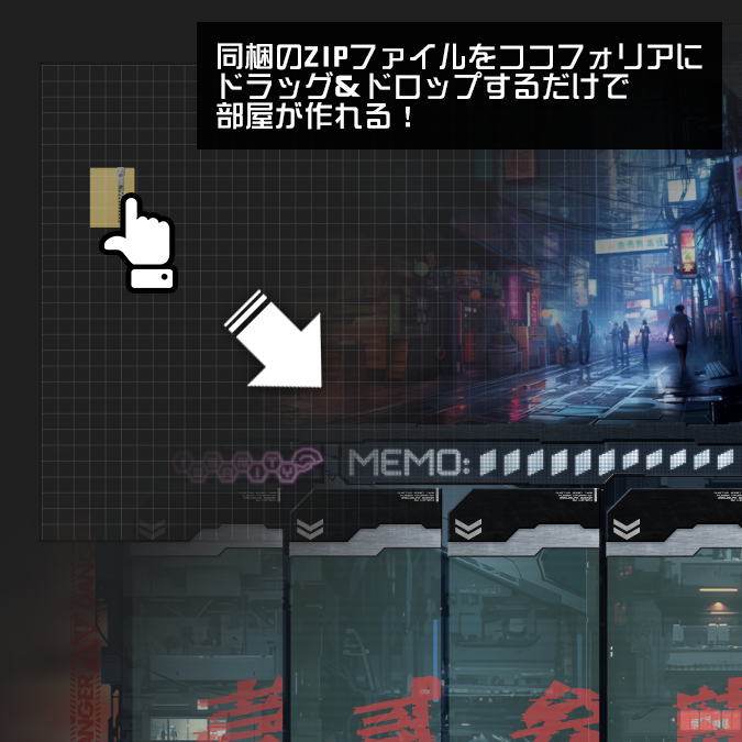 ココフォリア部屋素材シリーズ、第五弾です! 今回は「サイバーパンク×超高層建築構造×勘違い日本観」をコンセプトに、 超縦長でインパクト重視部屋をご用意しました! 動画やサンプル画像で気になりましたら、是非ご購入頂けますと幸いです✨