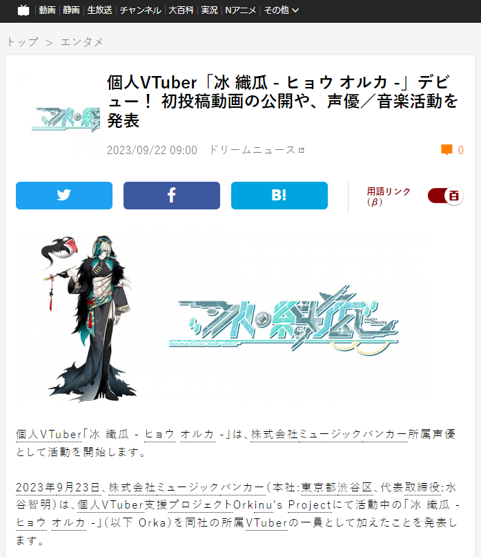株式会社ミュージックバンカー所属声優のVtuber、冰 織瓜(ヒョウ オルカ)様のロゴ、UI、グラフィックDesign等を担当しました。